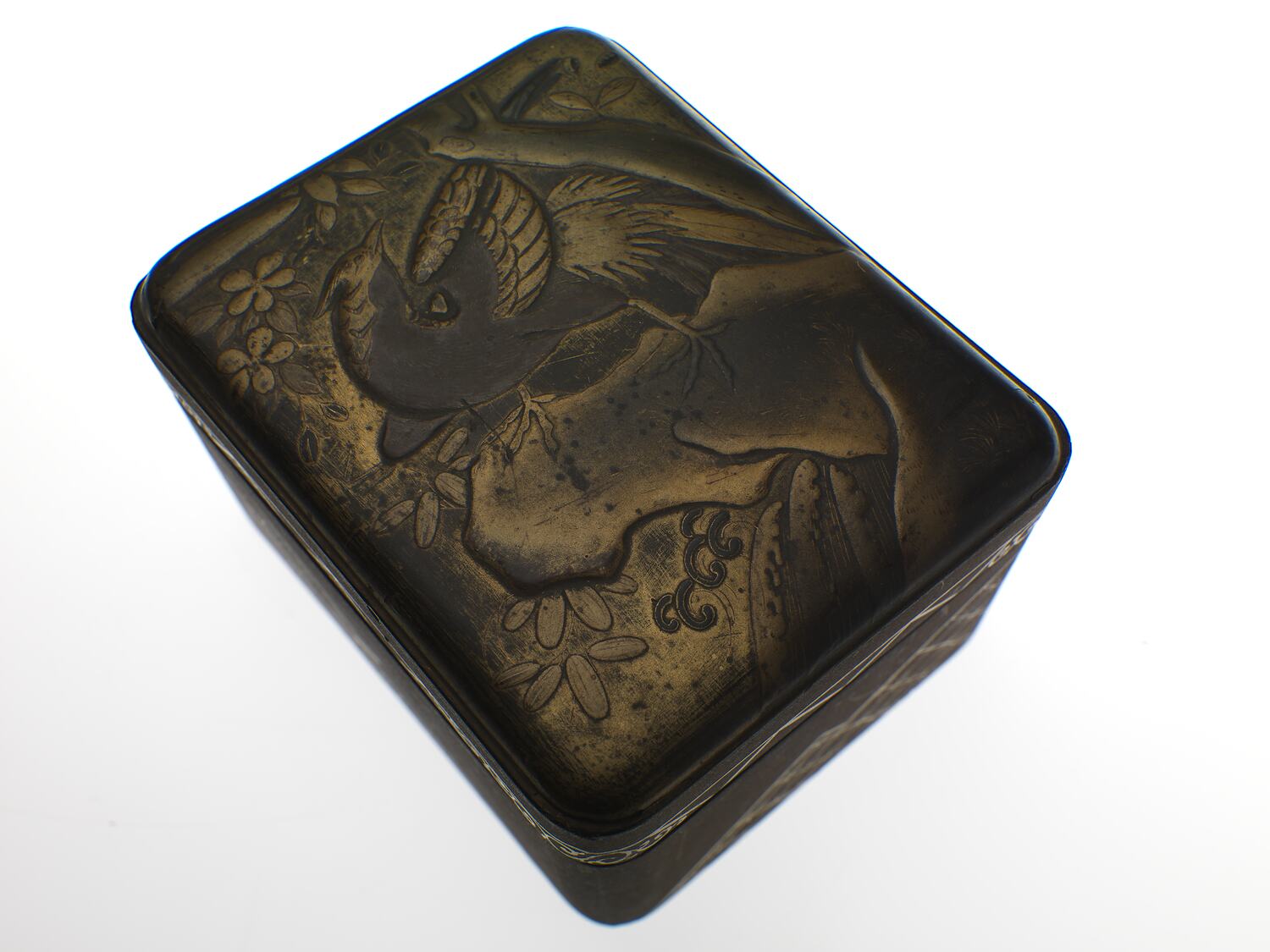 Maki-e lacquer box with a representation of a pheasant on a rock, manufactured in Japan in the early Meiji period (1868-1880).
