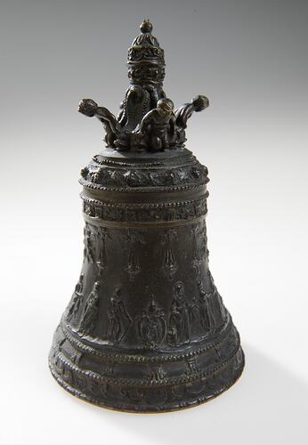Bronze bell manufactured in Italy and displayed in the Italian Court at the Melbourne International Exhibition. The family of John Twycross have always believed it to be modelled on one of the bells from St Peter's Basilica, Rome.
