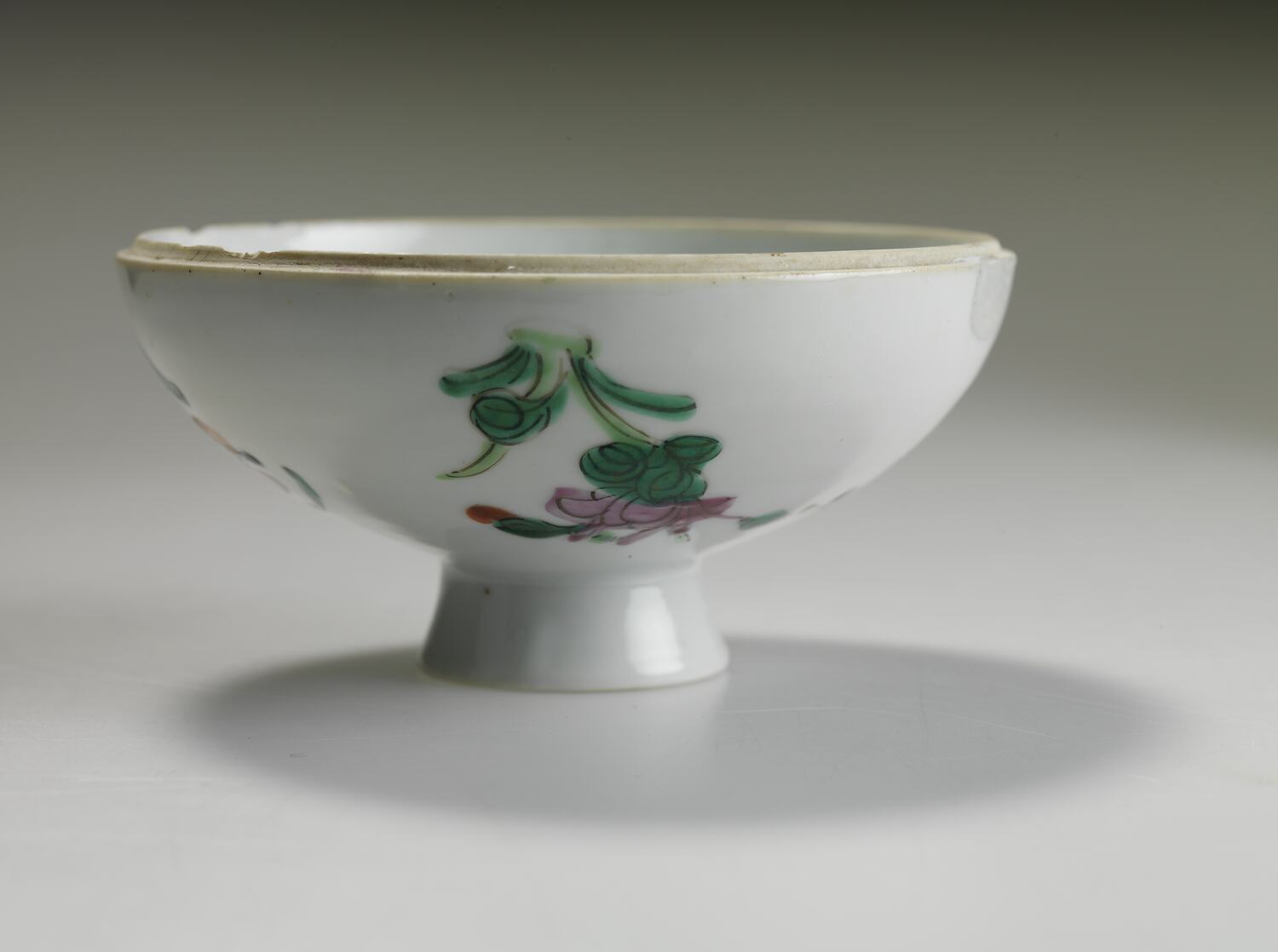Standing on a tall, flaring foot pedestal, the bowl would have originally had a lid, now missing. It is part of the John Twycross collection and was presumbably acquired prior to Twycross' death in 1889. It may have been acquired by Twycross, along with numerous other examples of decorative art objects, at the 1880 Melbourne International Exhibition.