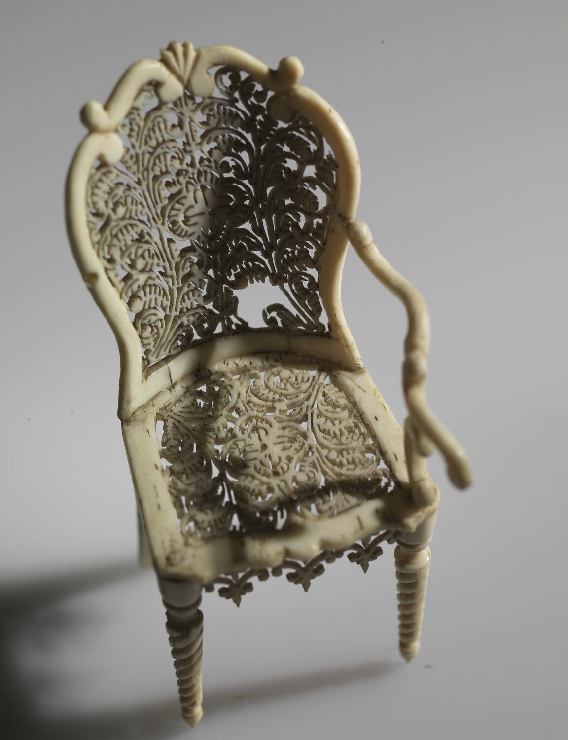 Ivory medallion back dolls house chair crafted in India, circa 1880.