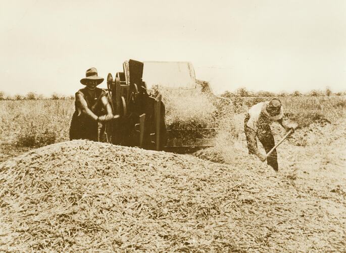 This image is part of a collection of photographs, moving film, artefacts, documents and trade literature relating to Massey Ferguson (Aust.) Ltd, known as the H.V. McKay Sunshine Collection. The Australian operations of this company were originally founded as Hugh V. McKay in the 1890s. In 1930 it merged with Massey Harris's Australian operations to become H.V. McKay Massey Harris Pty Ltd. In 1955, this company was in turn absorbed into the Massey-Ferguson global entity becoming Massey Ferguson (Aust.) Limited.