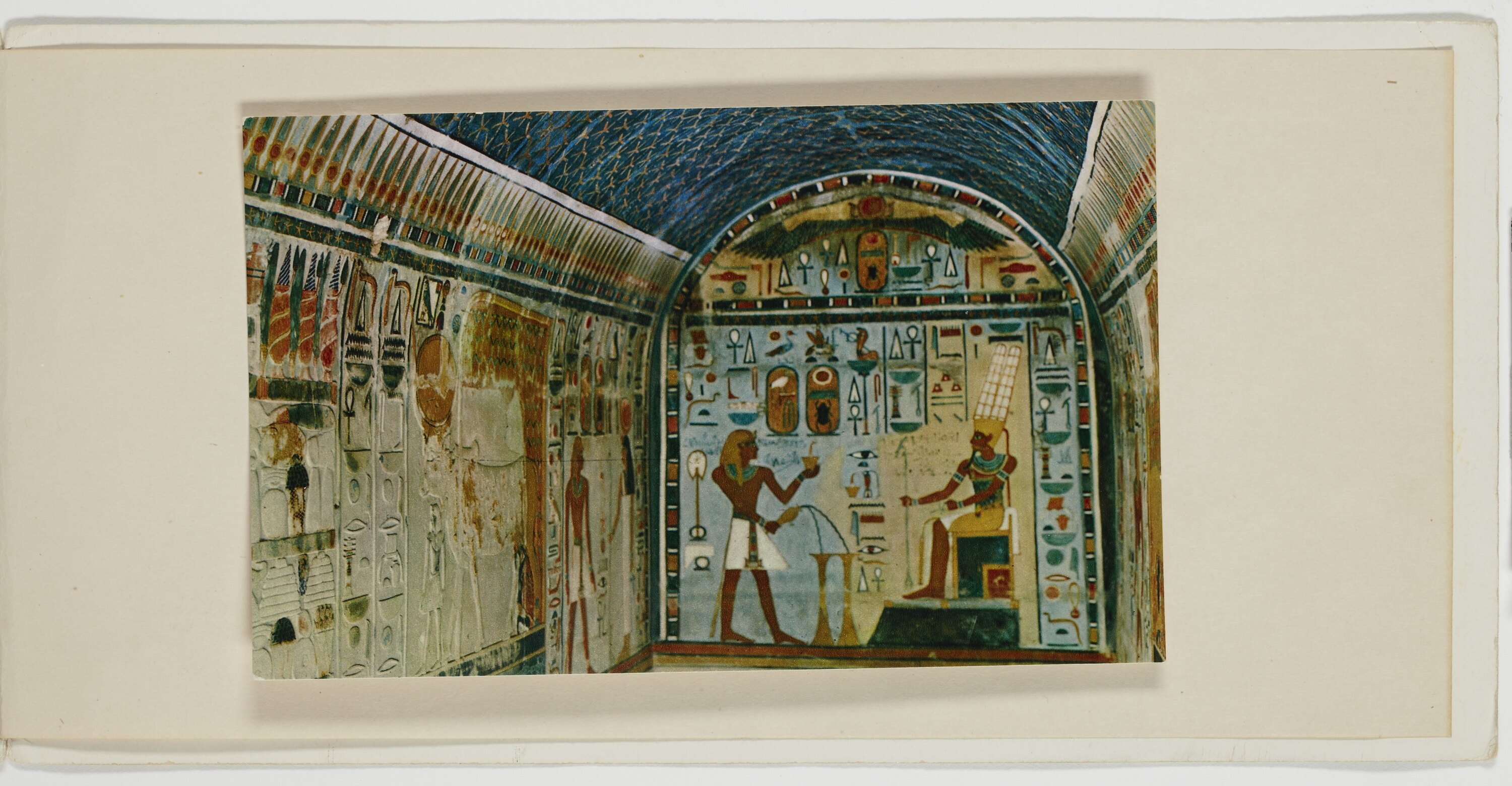 Christmas card from Gamal Abdel Nasser, President of the United Arab Republic, to Monica Aron (later Gates), extending his best wishes for Christmas and the New Year, 1964. Monica Gates and then Egyptian President Gamal Nasser, first began corresponding in 1961 when Monica wrote a letter to Nasser requesting an Egyptian National Doll. Nasser's daughter was named Mona so he began to send Monica Christmas Cards yearly. Gamal Nasser was president of Egypt from 1956 until his death in 1970.