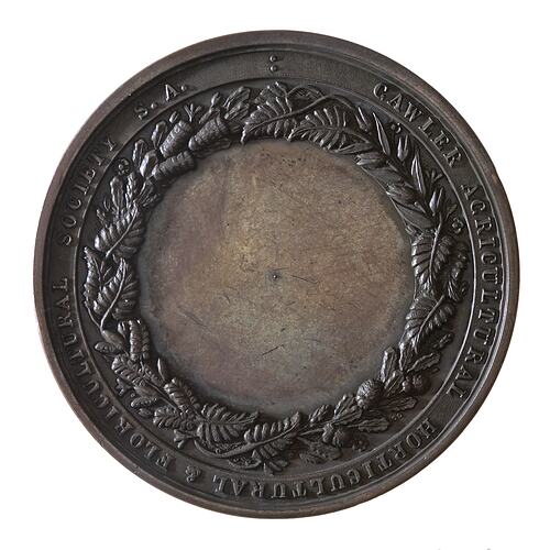 Other Details: An unissued bronze prize medal of the Gawler Agricultural Horticultural and Floricultural Society. It is dated around 1880.