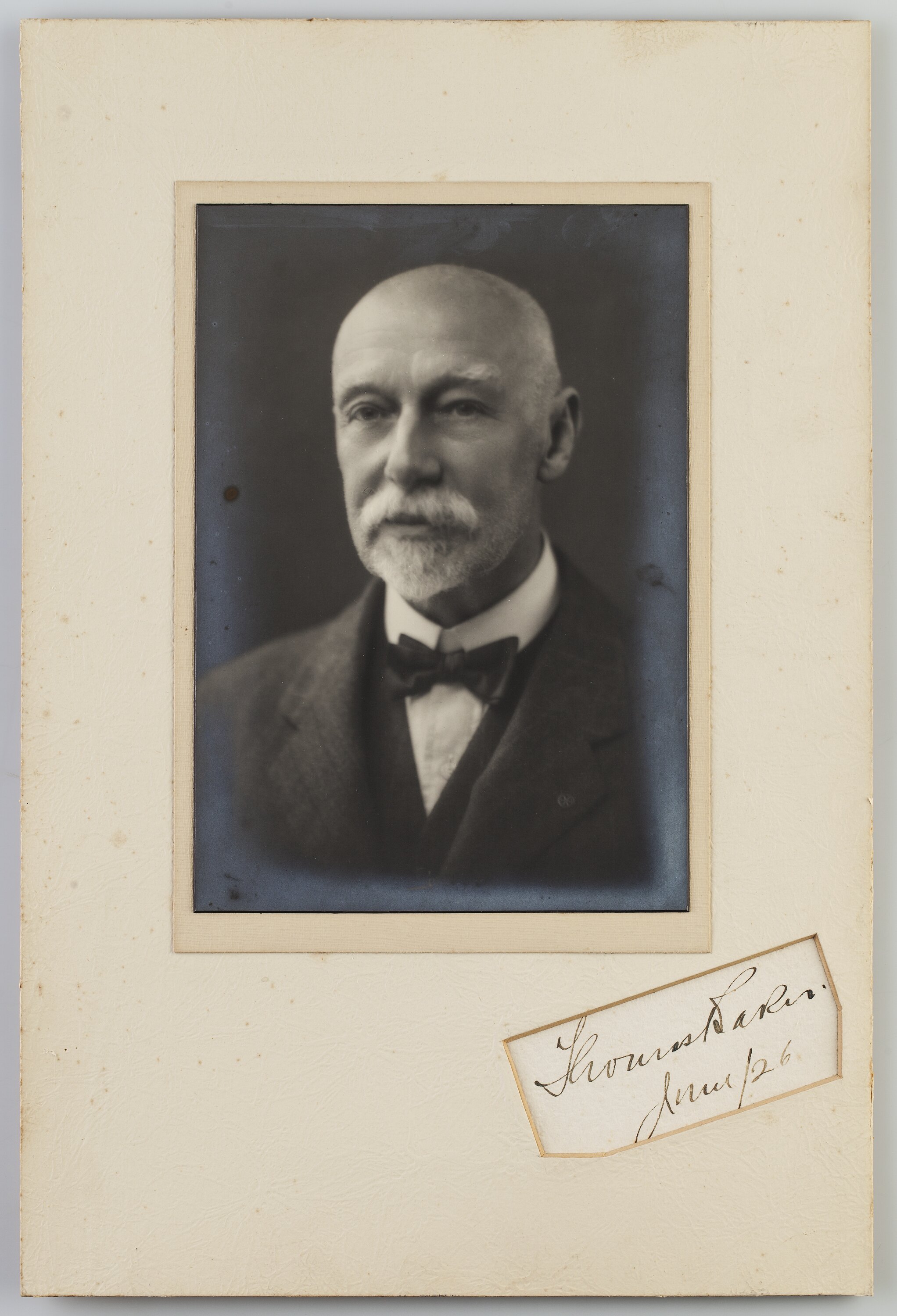 Black and white portrait photograph of Thomas Baker signed and dated June 1926. This photograph was taken only 2 years before his sudden death at age 78. He was still actively involved as Managing Director at this time.