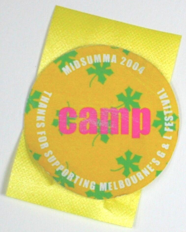 Printed on front: 'MIDSUMMA 2004 / camp / THANKS FOR SUPPORTING MELBOURNE'S G & L FESTIVAL'.