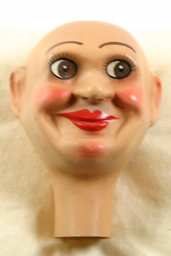 The collection of Melbourne Toy manufacturer L.J.Sterne (Leo J. Sterne) was donated to the History Collection of Museum Victoria in 1990 by the executers of his estate. Containing over 300 items it is, however, largely a paper-based collection, featuring catalogues, advertising brochures, flyers, packaging, photographs and certificates, as well as some doll parts (such as limbs, eyes and wigs) and other items from the manufacturing process. There are only around seven or eight examples of the company's finished product (most of which came from other sources than the Sterne Estate donation), so the head and the jig dolls are wonderful additions to the collection. They fit in perfectly with the proposed future collecting directions of the Museum's Childhood Collection Policy, which is to focus on acquiring Victorian manufactured toys, particularly those which build on existing collections. As objects, they also enhance the display potential of the L.J. Sterne collection in looking at manufacturing in Melbourne and its decline, early children's television production, and Sterne as an immigration story.