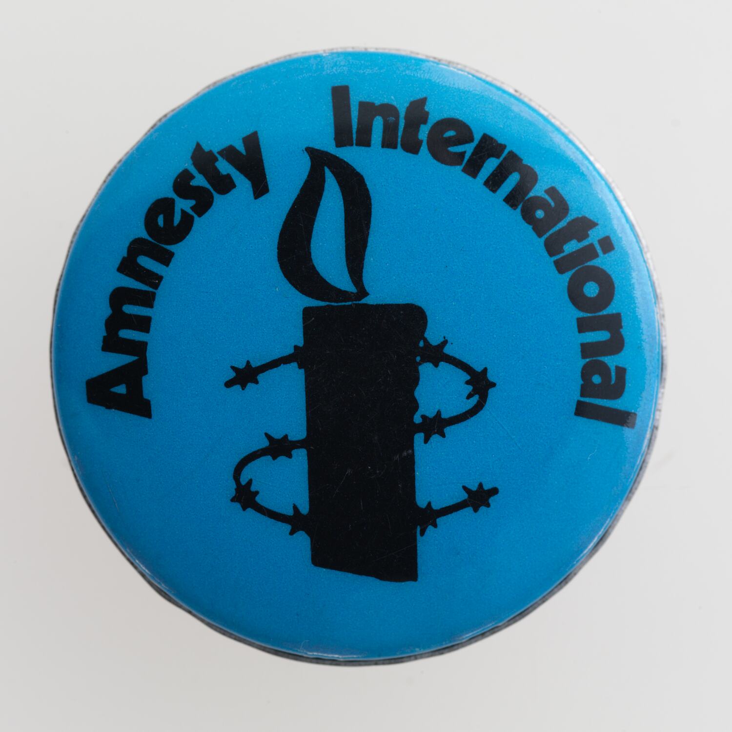 Badge supporting Amnesty International. Amnesty International was created in 1961, out of an international campaign to support two Portuguese students imprisoned after raising their glasses to toast freedom. Its Australian branch vision is 'of a world in which every person enjoys all of the human rights enshrined in the Universal Declaration of Human Rights and other international human rights instruments. Amnesty International is concerned solely with the impartial protection of human rights.'
