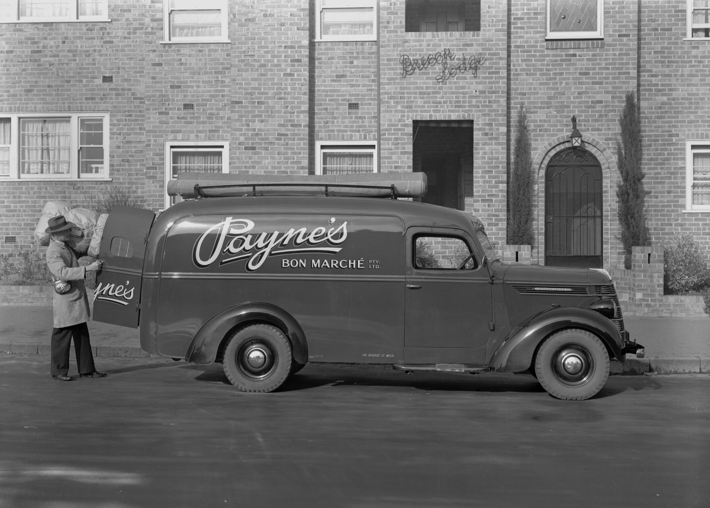 Publicity photograph taken 5 July 1940 in Hotham Street East Melbourne. Paynes Bon Marche department store was located at 138 Bourke Steet, Melbourne.
