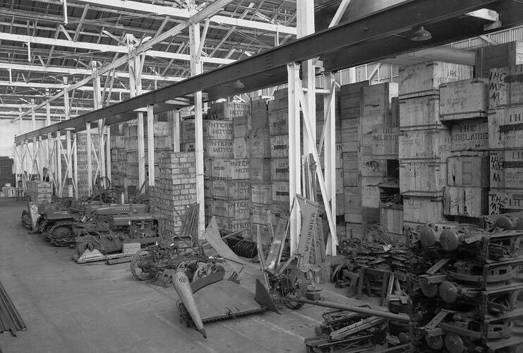 Interior of the warehouse at the International Harvester Co. of Australia plant at South Melbourne, Victoria.