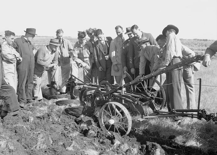Ploughing demonstration with a McCormick-Deering W-4 tractor and GL-42 plough at the Geelong Training School of the International Harvester Co. of Australia.