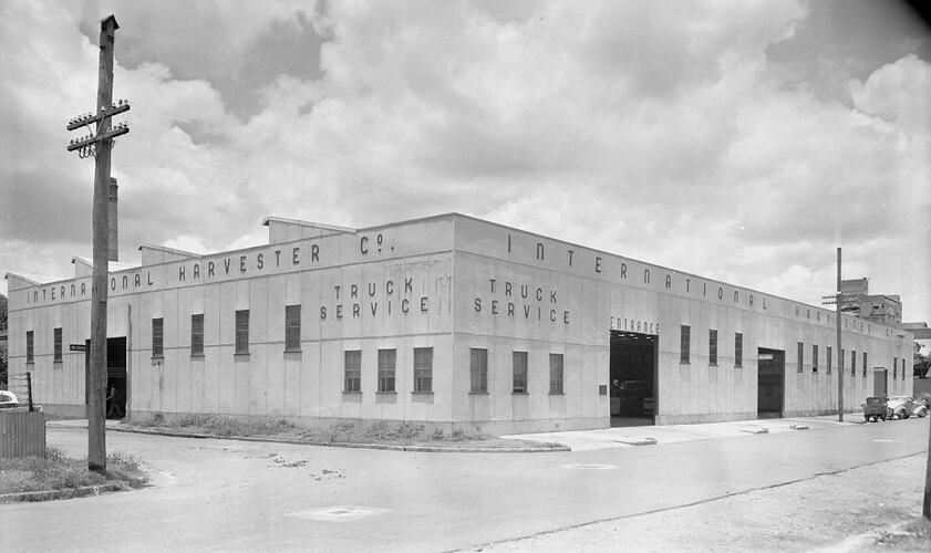 Exterior of the IHC motor truck service workshop in Brisbane.