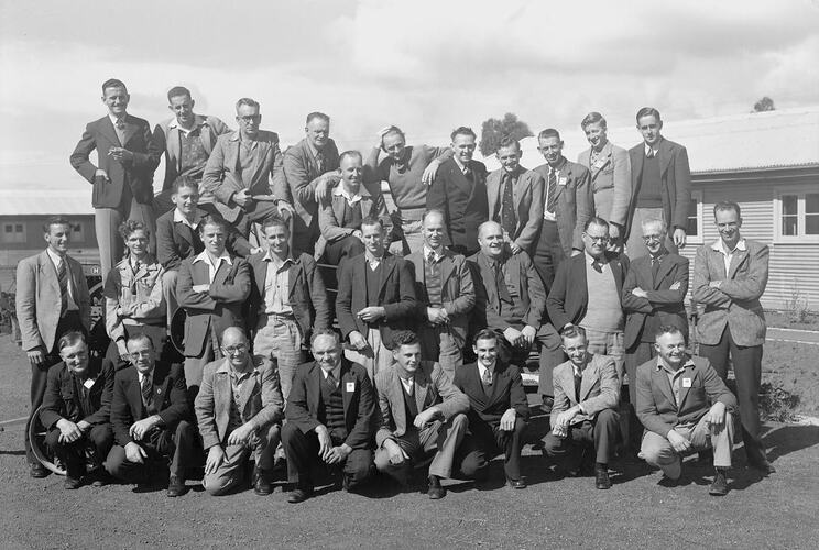 Group portrait of the 13th course at the International Harvester Co. of Australia Training School, Geelong, Victoria.