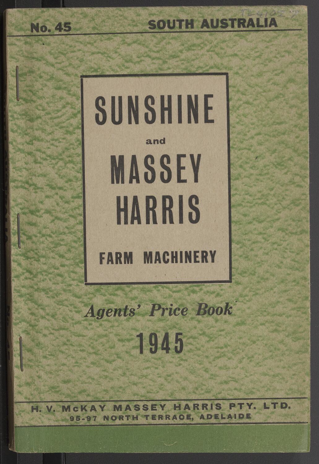 'SUNSHINE and MASSEY HARRIS FARM MACHINERY Agents' Price Book 1945' 5354, Ec. 545
