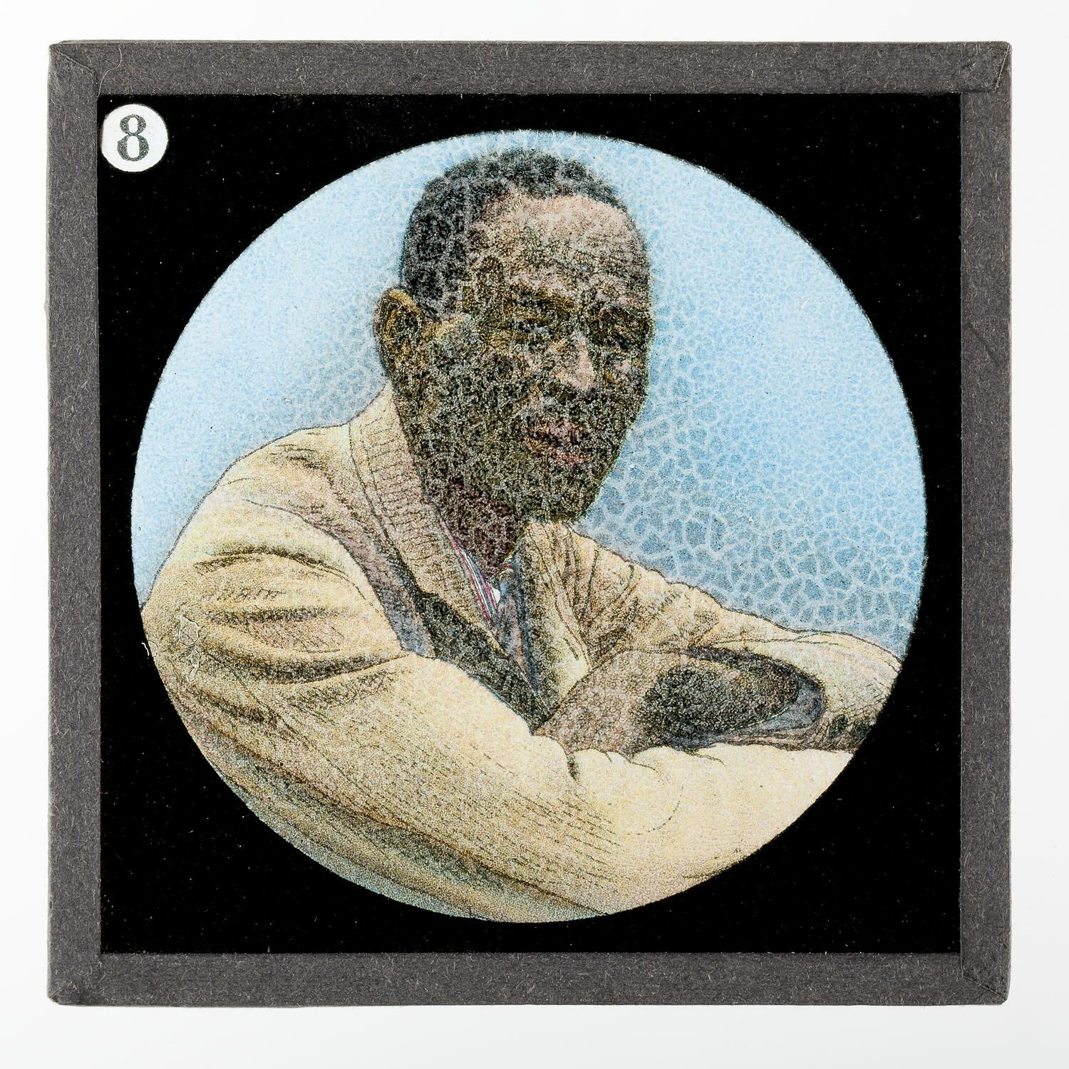 Standard format colour Lantern Slide edged with black tape with number in top left corner.