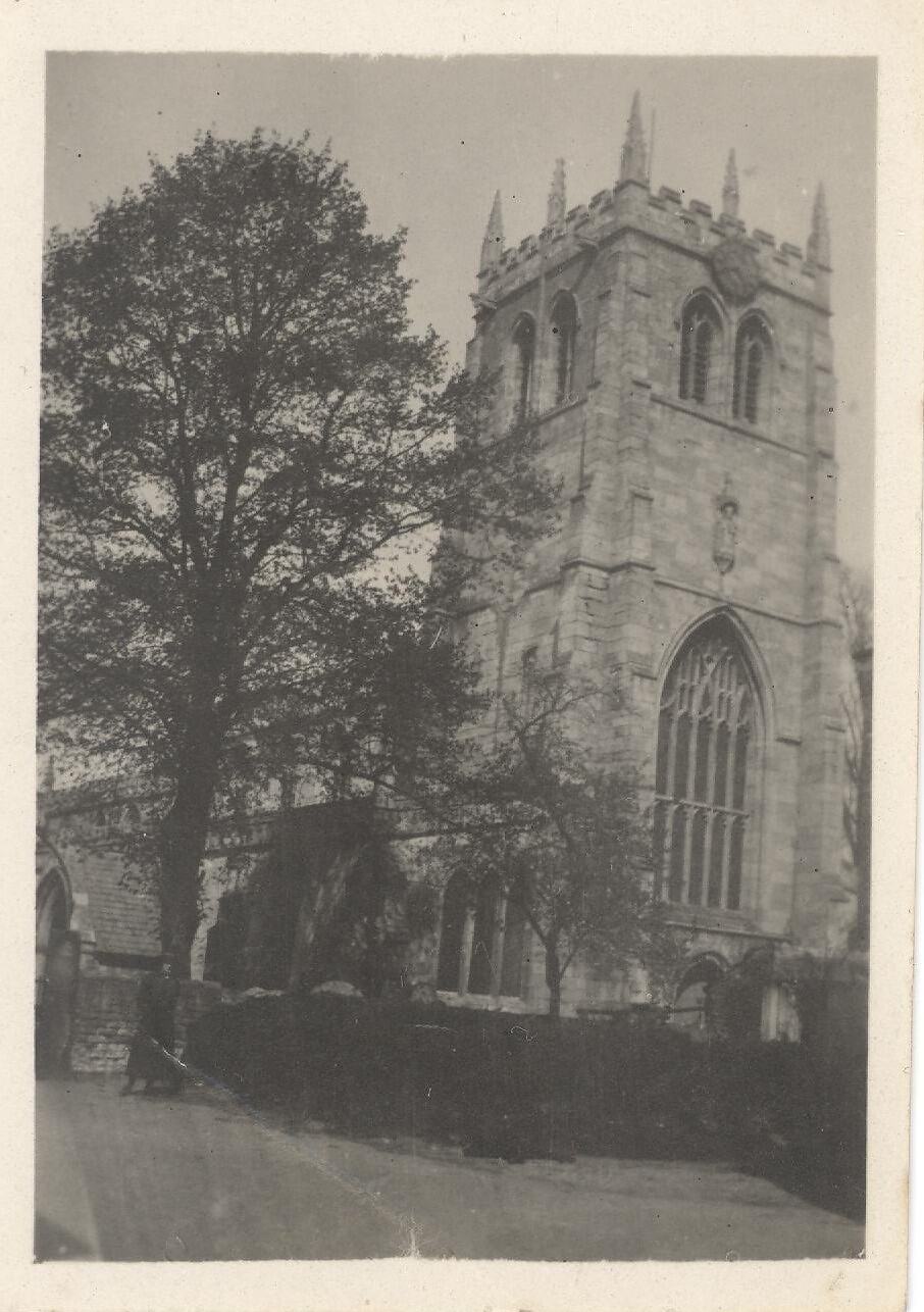 St Cuthburt's Church, Fishlake, England. One of a collection of 60 small photographs taken by Tom Robinson Lydster during World War I.