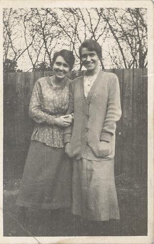 Two women smiling and relaxed, in casual clothes.