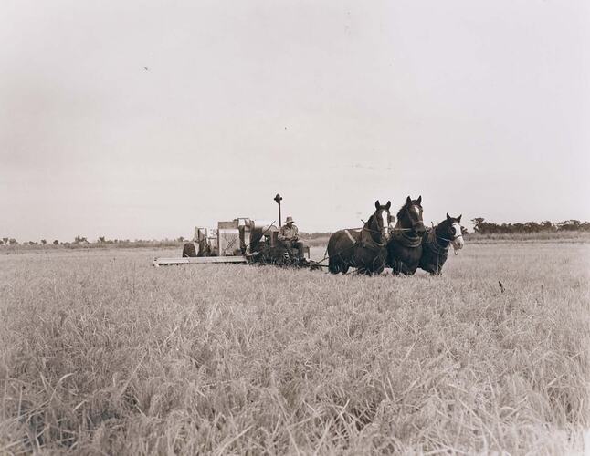 Agricultural Equipment, Industry, Manufacturing, Horses, Farm Animals, Header Harvesters, Farms, Farmers, Rice Crops, Horsedrawn Harvesters