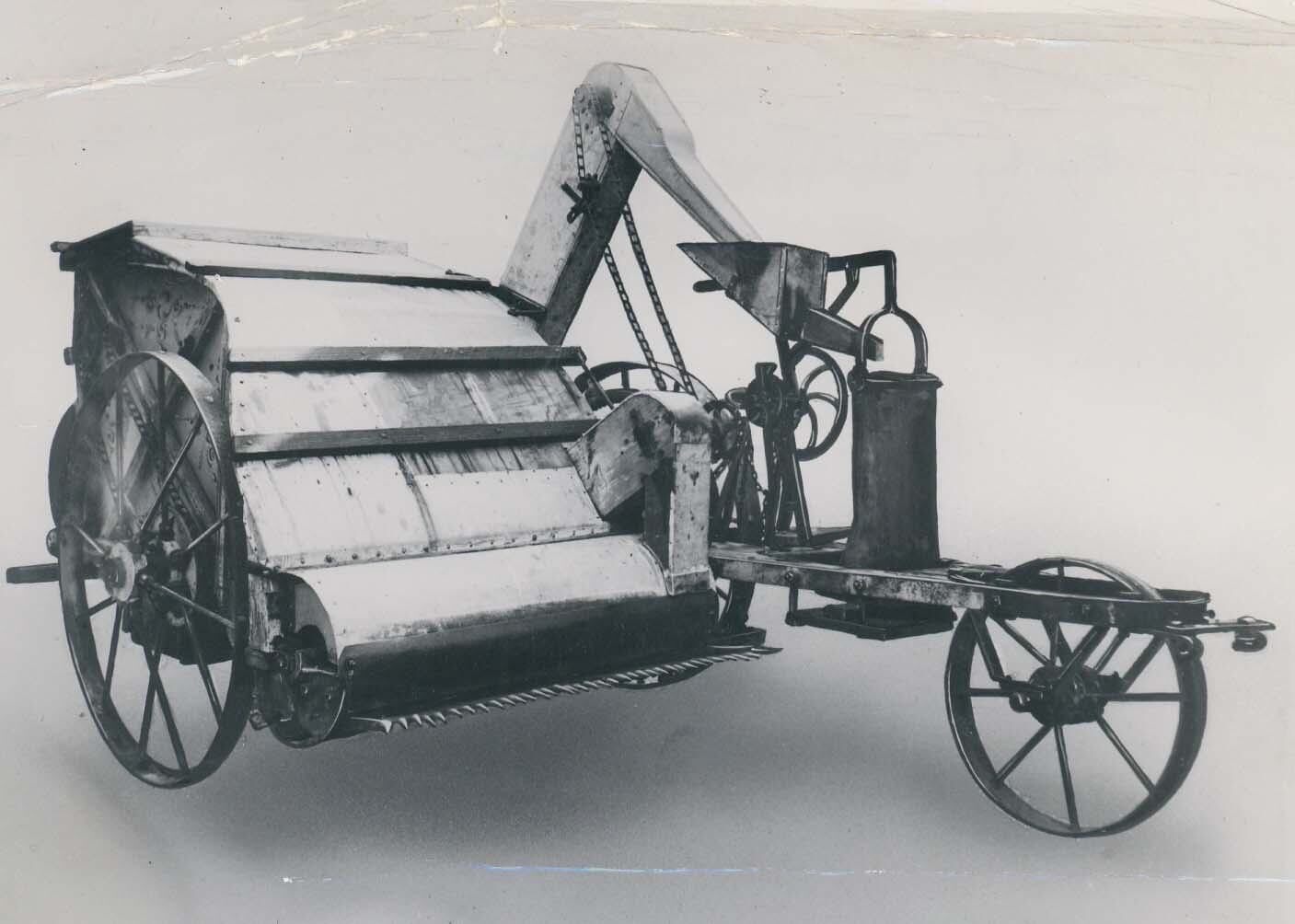 Studio photograph of the earliest Stripper Harvester.