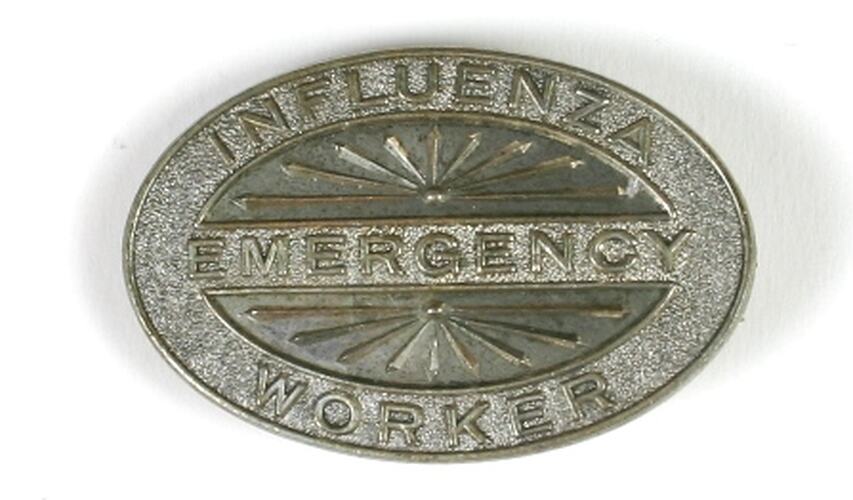 Badge issued by the government to emergency workers recruited to help health professionals respond to the influenza pandemic of 1918-1919.