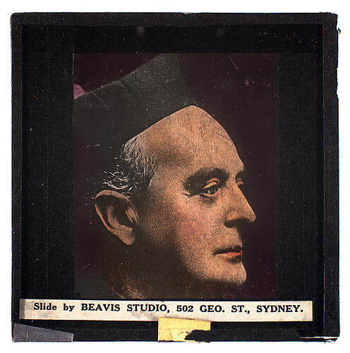 Lantern slide of portrait photograph of a man. Made by Beavis Studio, Sydney, New South Wales, circa 1930s-1940s.