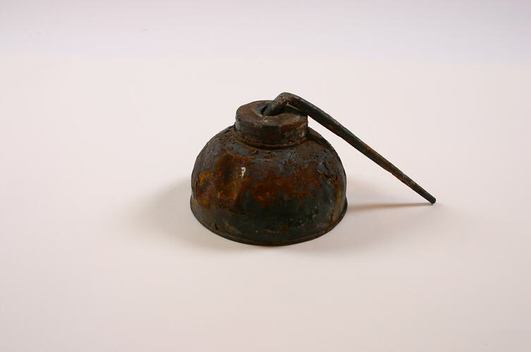 Found in the burnt-out remains of Bill Coppinger's shed at Mount Disappointment, this oil can is one of the few objects from a large collection of old tools and machinery to remain following the Kilmore East Bushfire of 7 February 2009.