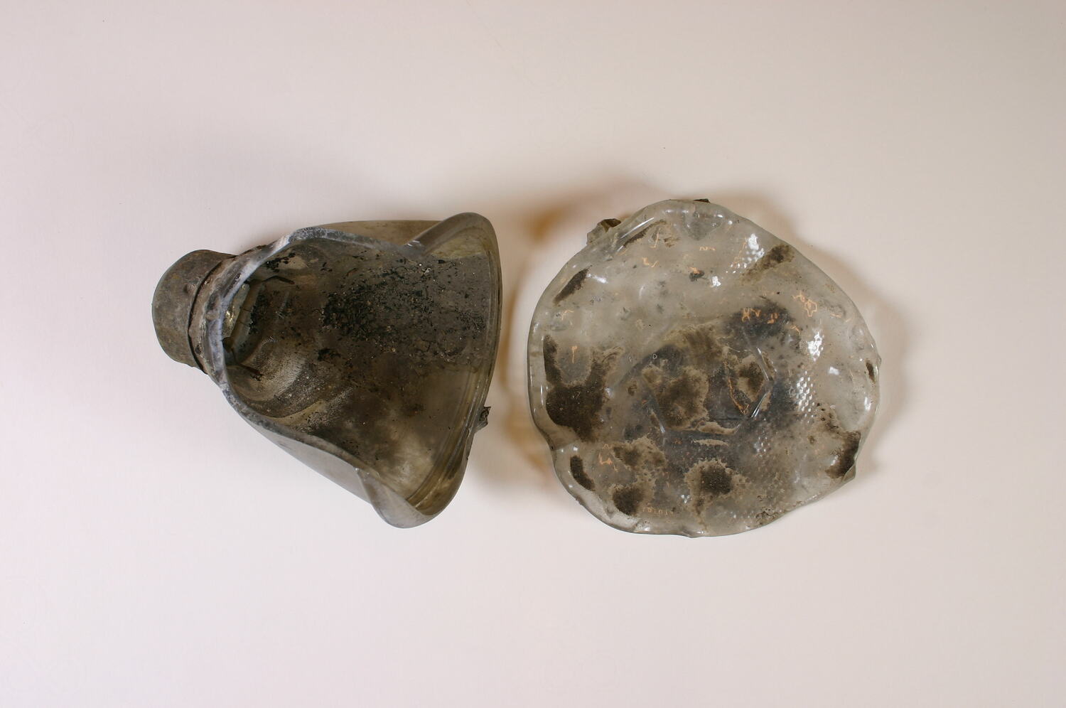 Originally attached to Bill Coppinger's machinery shed at Mount Disappointment, this spotlight was found on the ground after the fires. The face of the light had separated from the body and had molded to the shape of the gravel it fell on. The house, shed and all the contents were lost in the Kilmore East Bushfire on 7 February 2009.