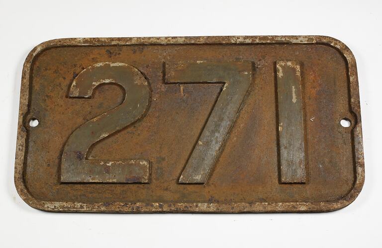 A Victorian Railways cast iron locomotive number plate, "271".