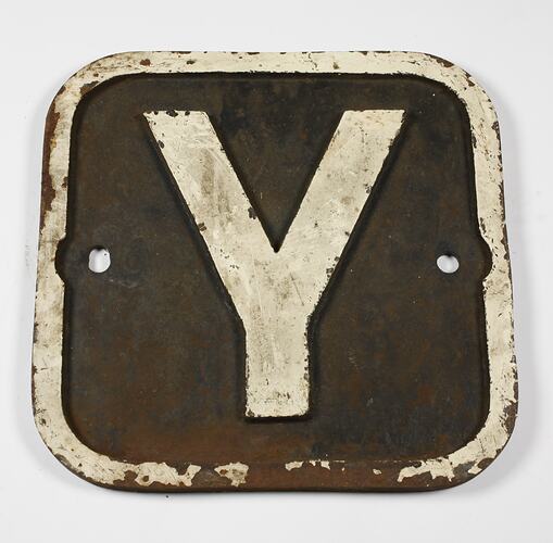 A locomotive number plate, "Y".