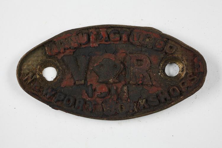 A rollingstock builder's plate, very likely for a Goods wagon, made by the Victorian Railways Newport Workshops, Victoria, Australia, 1911.