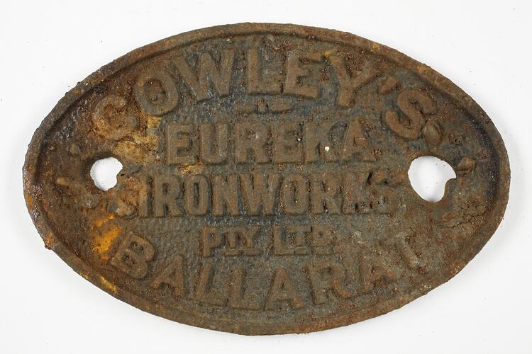 Front: "COWLEY'S / EUREKA / IRONWORKS / PTY LTD / BALLARAT."