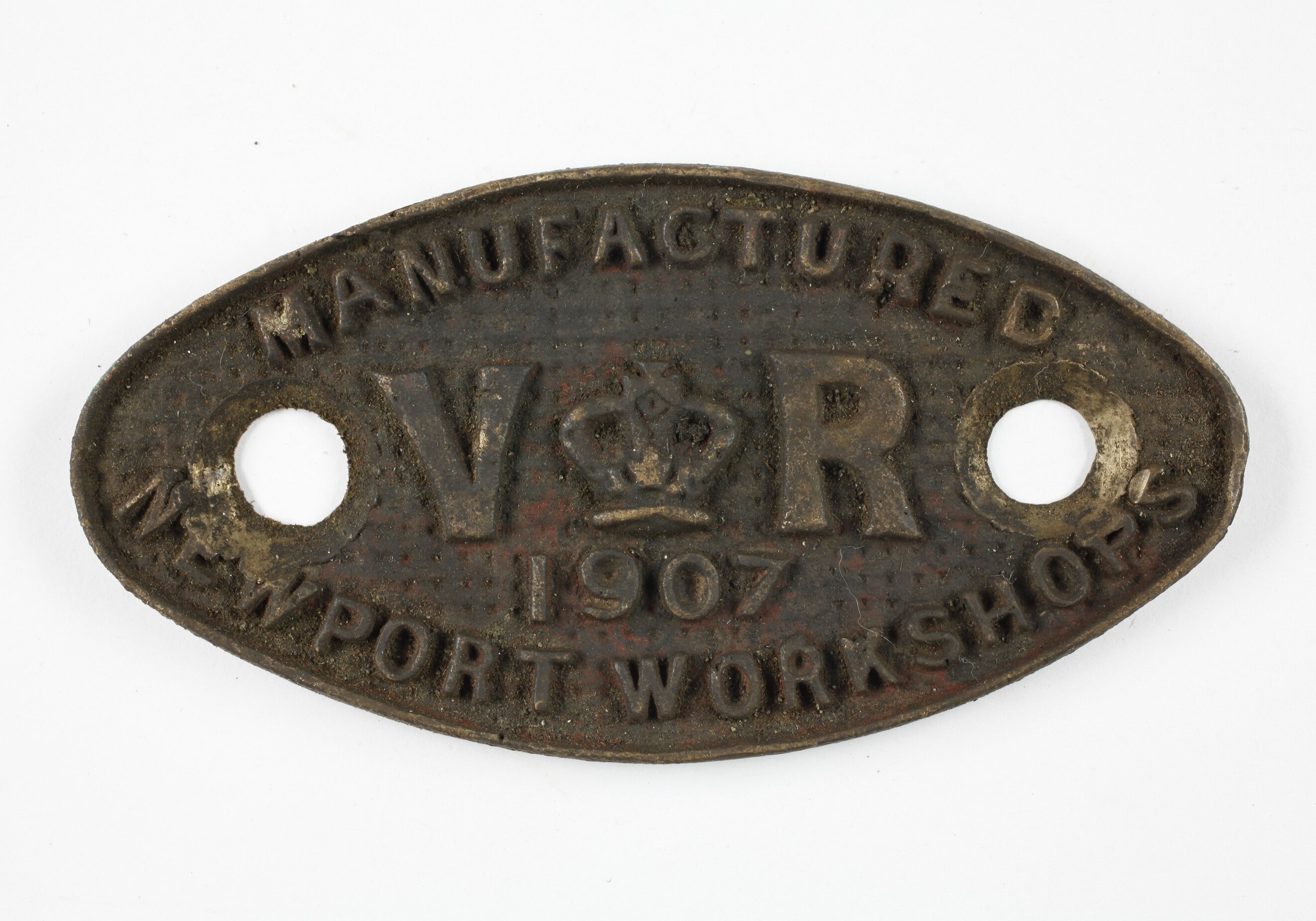 A rollingstock builder's plate, very likely for a Goods wagon, made by the Victorian Railways Newport Workshops, Victoria, Australia, 1907.