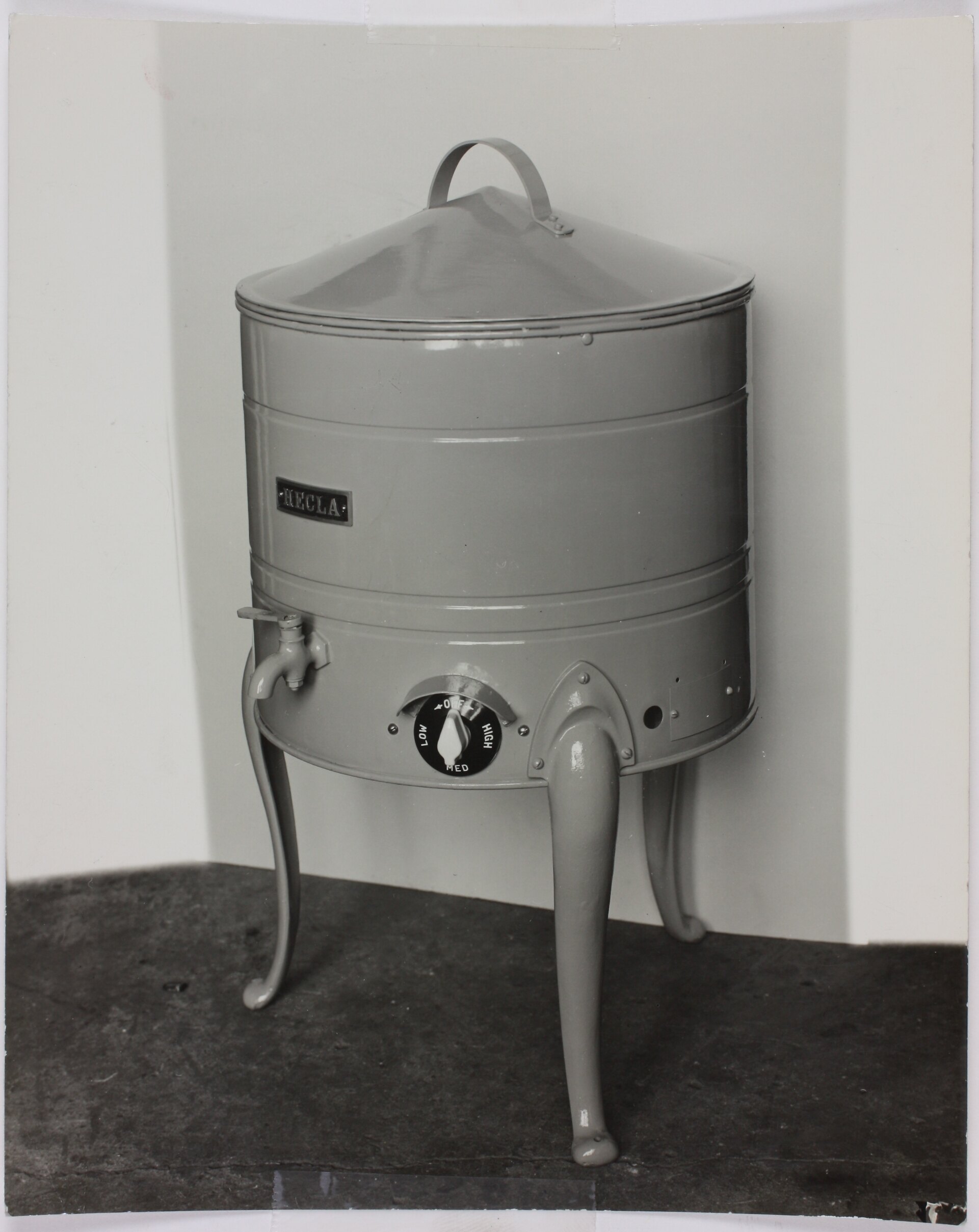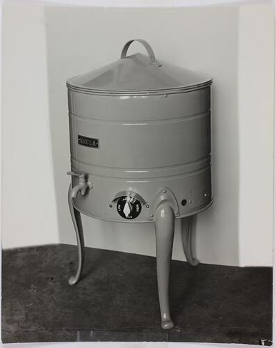 Black and white photograph of Hecla Electric Wash Boiler, circa 1929-40.