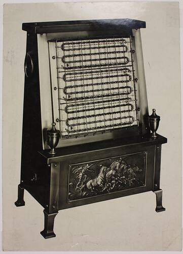 Black and white promotional photograph of Hecla 'Chariot' Electric Heater, circa 1920s.