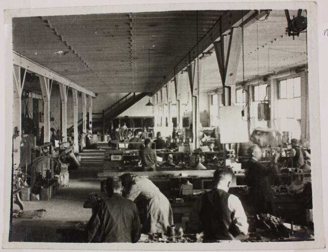 Black and white photograph of employees at a Hecla Electrics factory in the 1920s. The photograph may be of the Little Collins Street, or Little Bourke Street premises.