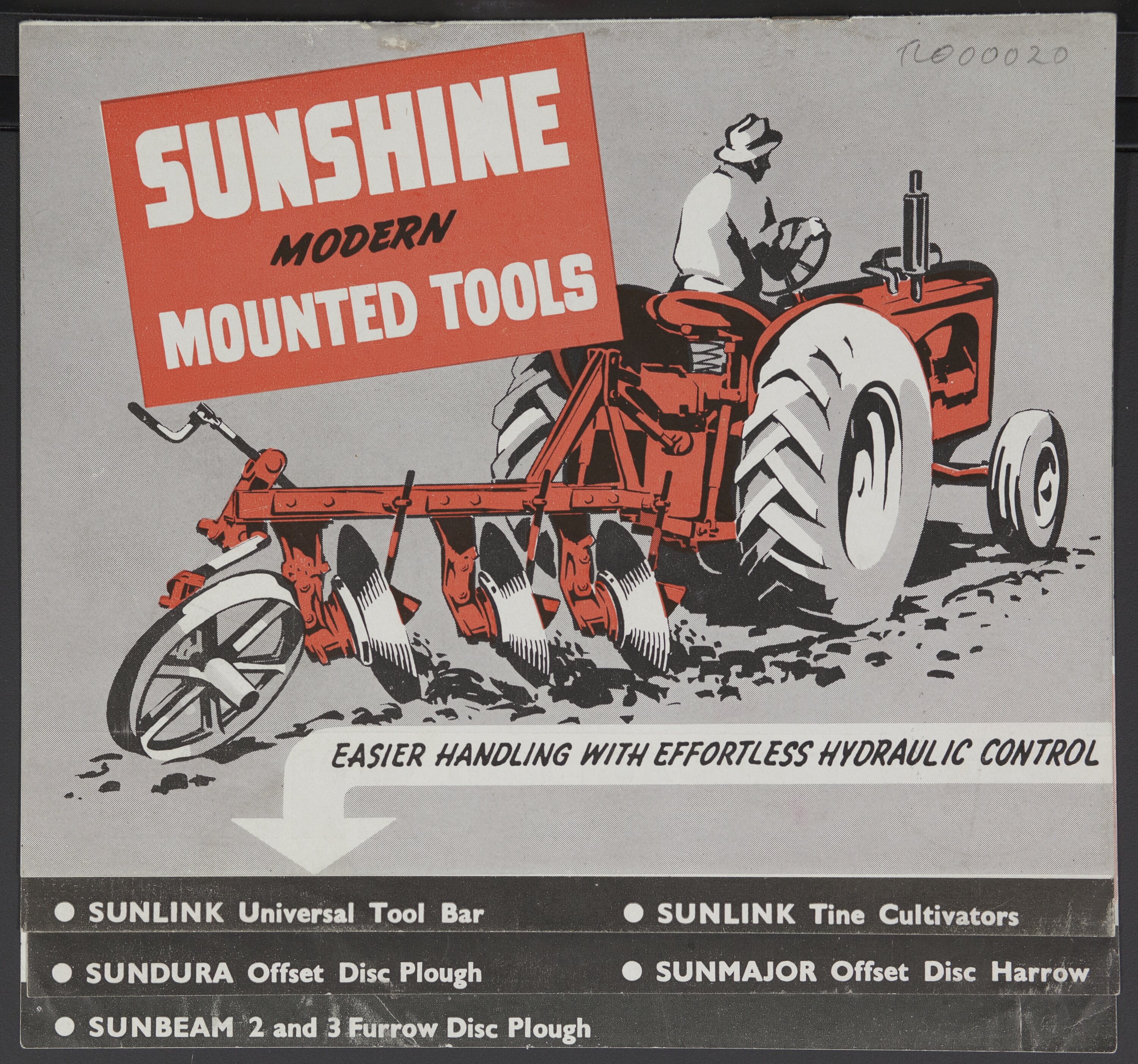 Publicity brochure from the H. V. McKay Massey Harris trade literature collection. This flip brochure provides an overview to a new and "modern" range of Sunshine Mounted tools. The products advertised are all matched to the "New" 745 Diesel tractor which is featured on the rear cover.