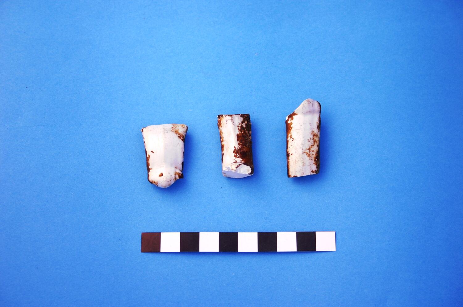 Three conjoining pieces of a high-fired, earthenware handle, probably from a jug or chamber pot. The white glaze has a greyish hue that is typical of 'White Granite'. Manufactured between the 1840s and circa 1930.