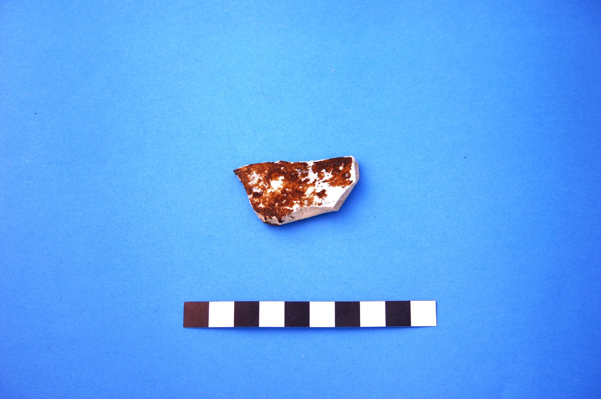 One fragment of earthenware plate base. Transfer print is blue 'Asiatic Pheasants', popular in the second half of the 19th century and into Edwardian times.