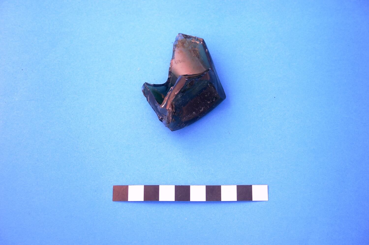 One medium-green glass bottle-base fragment. Has a tiny fragment of maker's mark, but insufficient for identification (looks like a horse-shoe). Has been manufactured in a vented mould that had a separate base plate. Date range of manufacture is circa 1874 to circa 1900.