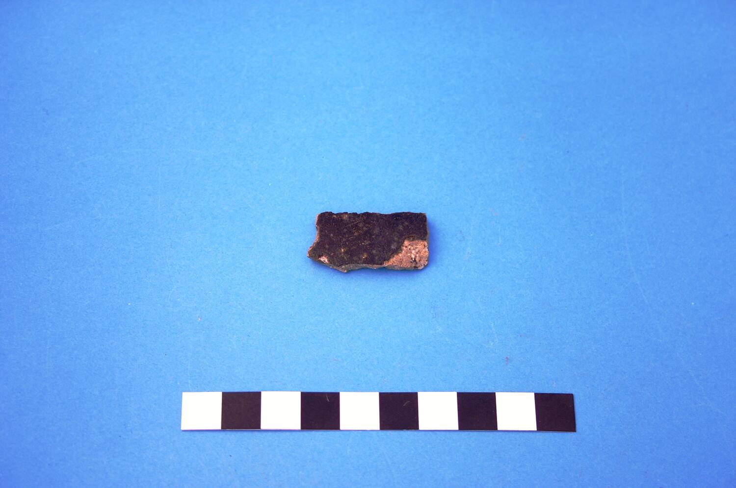 One fragment of stoneware container, probably a pickle jar. The item has a dark brown glaze and is of Chinese manufacture.