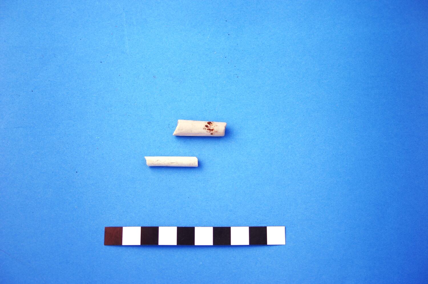 Two fragments of clay pipe stem with no decoration or maker's marks. Both pieces are from different items.