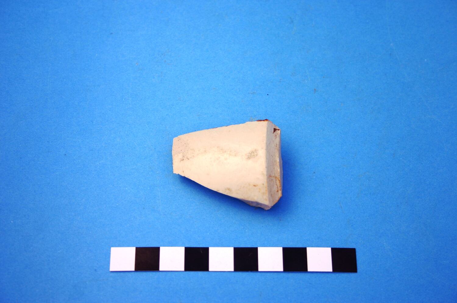 One fragment from a stoneware container with cream Bristol glaze. The date range of manufacture is circa 1835 to circa mid-20th century.