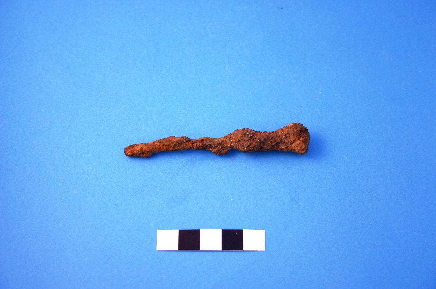 One almost complete wire iron alloy nail. Head type cannot be determined due to rust and encrustation. Manufacturing period is from the 1850s.