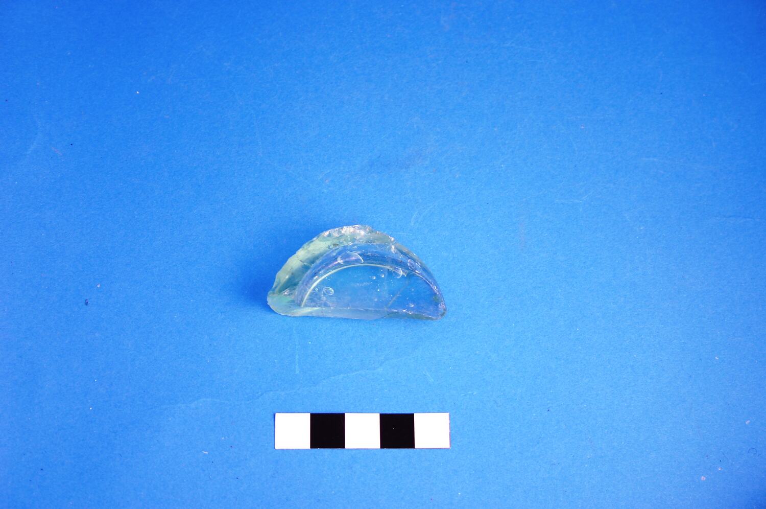 One medium green glass bottle base fragment possibly from a soft-drink bottle. Has been manufactured in a mould that had a separate base plate. Partial maker's mark: 'BOTTL.'. Broad manufacture date range of mid-19th century to circa 1900.