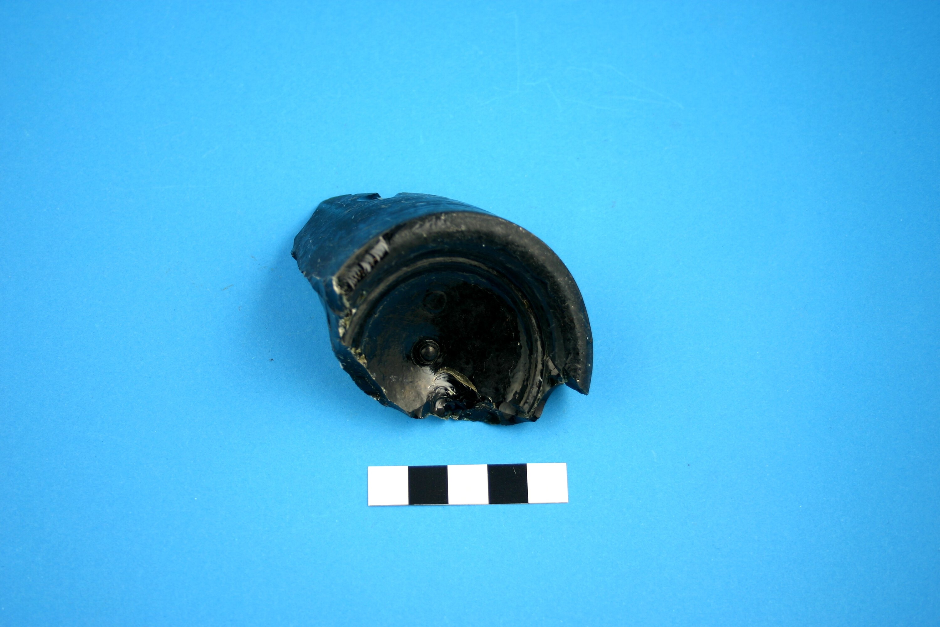 One dark green glass beer or wine bottle base fragment. Was manufactured in a vented mould with a separate base plate, suggesting it was made after circa 1874 but before circa 1900.