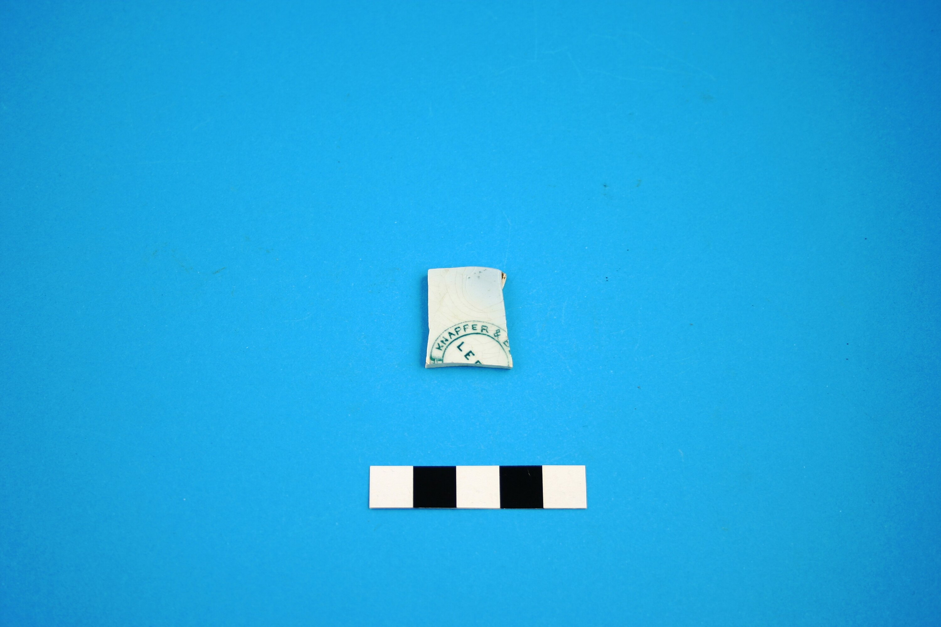 One white-glazed earthenware fragment with the maker's mark of Knapper & Blackhurst of Staffordshire (1867 to 1888).