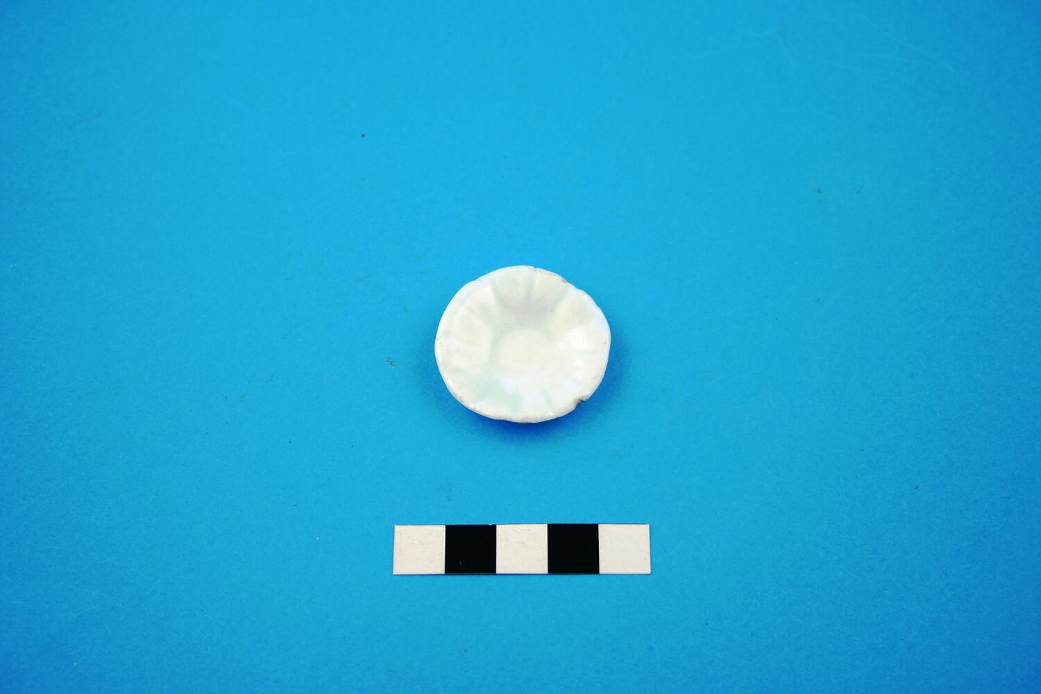 One complete white glazed porcelain toy saucer. Manufactured after 1800.