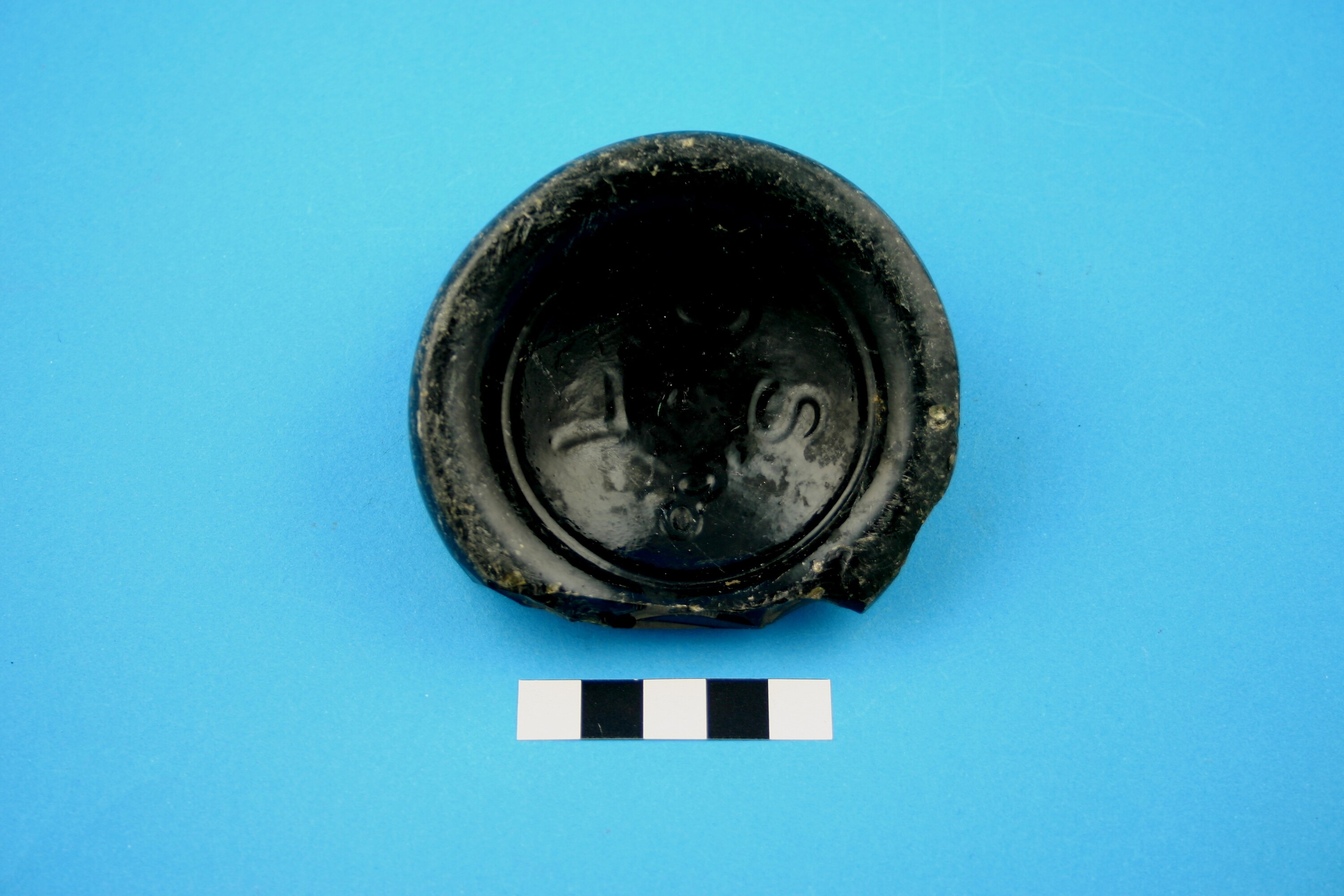 One dark green glass beer or wine bottle base. Maker's mark 'C S & L'. Was manufactured in a vented mould with a separate base plate, suggesting it was made after circa 1874 but before circa 1900.