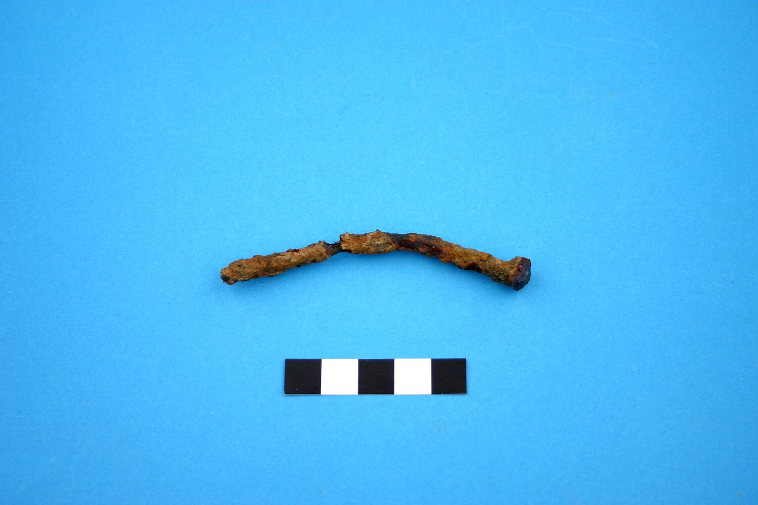 One almost complete wire iron alloy nail. Head type cannot be determined due to rust and encrustation. Manufacturing period is from the 1850s.