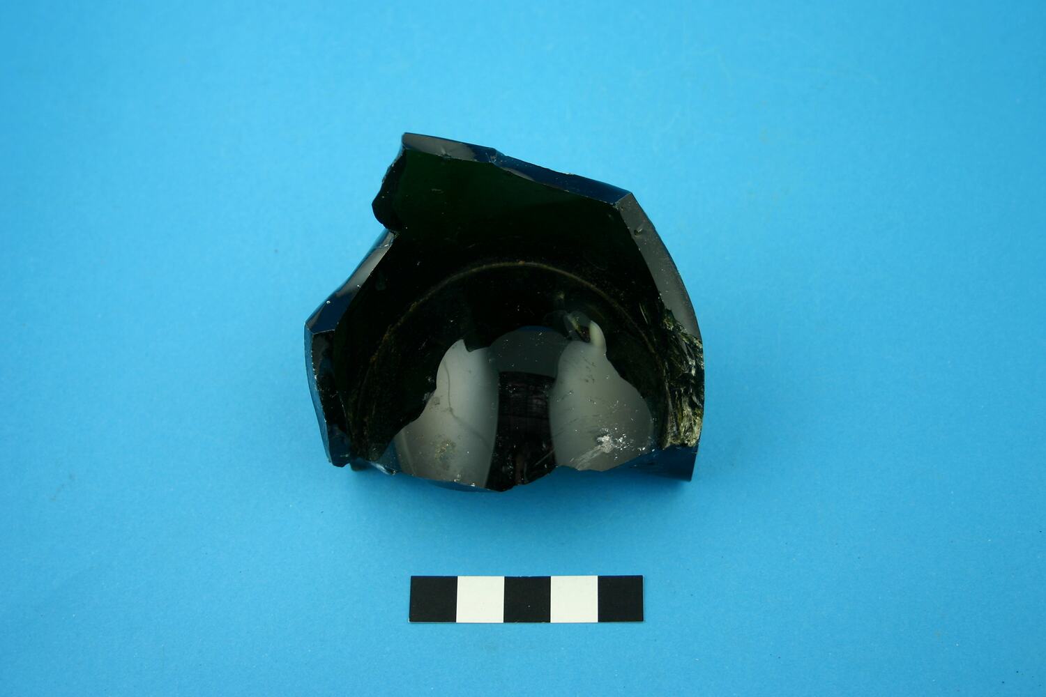 One dark green glass beer or wine bottle base fragment. Maker's mark: LYON... Was manufactured in a vented mould with a separate base plate, suggesting it was made after circa 1874 but before circa 1900.