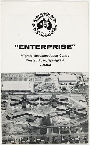 Inscription (cover): '"Enterprise"/ Migrant Accommodation Centre Westall Road, Springvale Victoria.'
